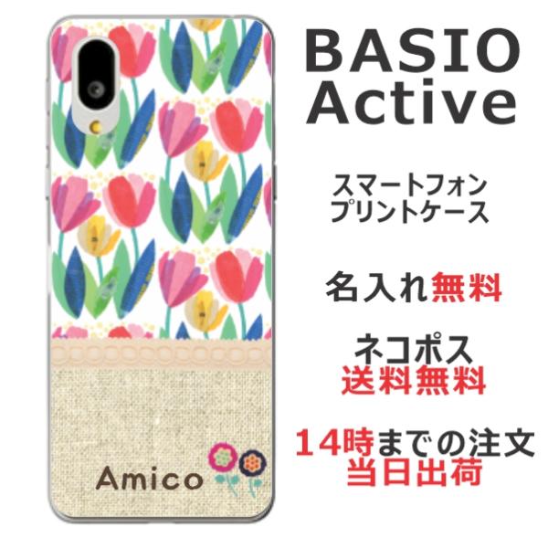 BASIO Active SHG09 ベイシオアクティブ らふら 名入れ スマホケース 北欧デザイン チューリップ