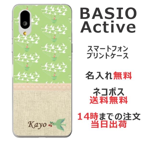 BASIO Active SHG09 ベイシオアクティブ らふら 名入れ スマホケース 北欧デザイン ホワイト バード