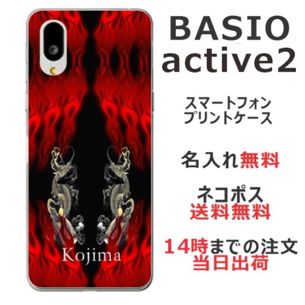 BASIO Active2 SHG12 ベイシオアクティブ2 らふら 名入れ スマホケース 和柄 炎闇双龍