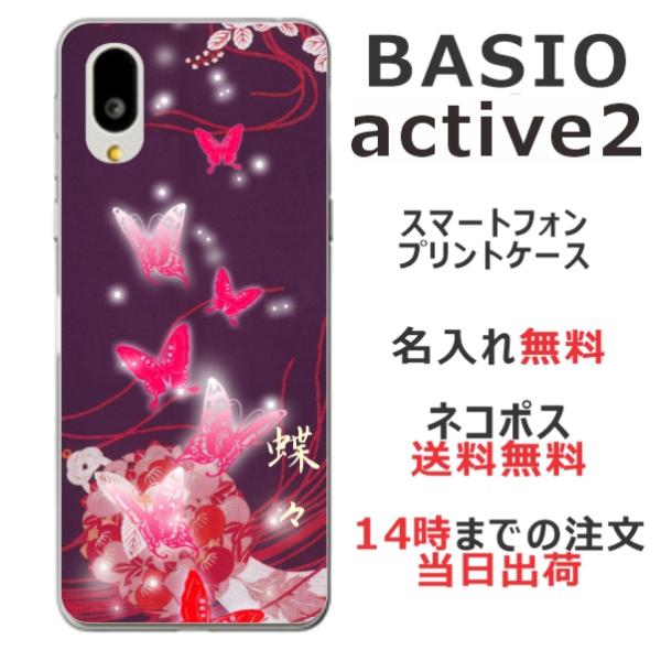 BASIO Active2 SHG12 ベイシオアクティブ2 らふら 名入れ スマホケース 和柄 紫闇光蝶