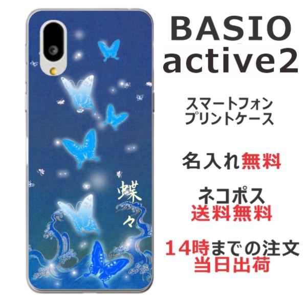 BASIO Active2 SHG12 ベイシオアクティブ2 らふら 名入れ スマホケース 和柄 蒼波光蝶