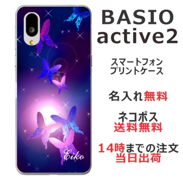 BASIO Active2 SHG12 ベイシオアクティブ2 らふら 名入れ スマホケース 和柄 紫蝶々