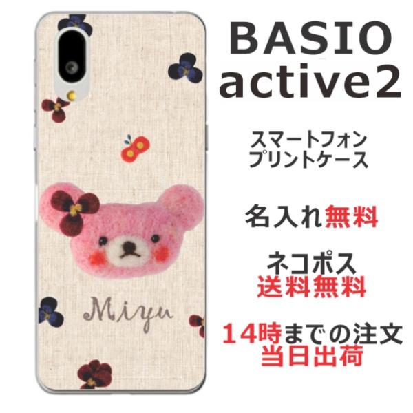 BASIO Active2 SHG12 ベイシオアクティブ2 らふら 名入れ スマホケース フェルト風プリントベア