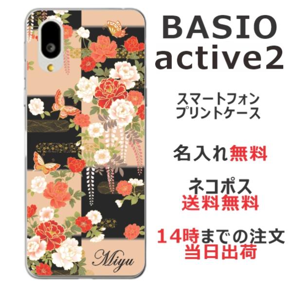 BASIO Active2 SHG12 ベイシオアクティブ2 らふら 名入れ スマホケース 和柄 花 牡丹蝶