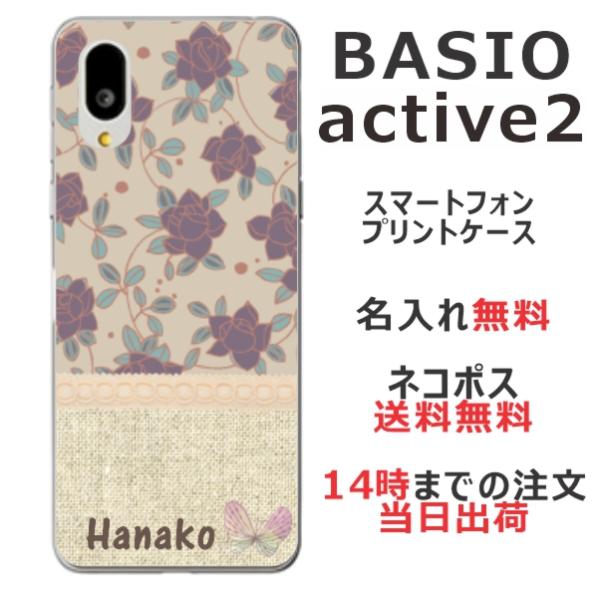BASIO Active2 SHG12 ベイシオアクティブ2 らふら 名入れ スマホケース 和柄 花 バラ
