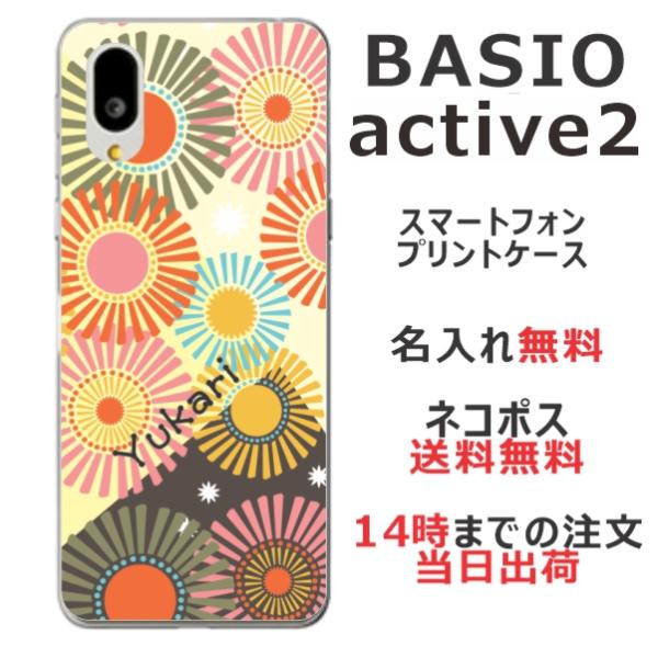 BASIO Active2 SHG12 ベイシオアクティブ2 らふら 名入れ スマホケース 和柄 花 モダン花火