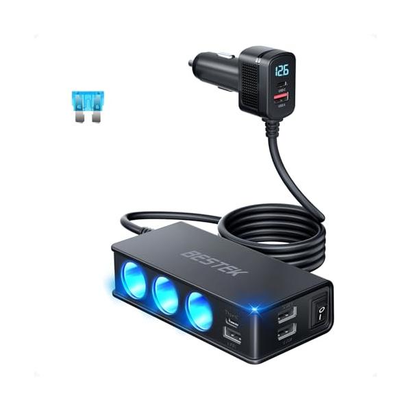BESTEK 車載充電器 シガーソケット 3連 USBポート QC3.0 & PD30W急速充電対応 12V/24Vシステム 電圧・電流表示 A