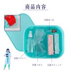 <tr><th>内容</th><td>消毒スプレー、消毒液入れ、保護メガネ、抗菌スティック</td></tr>