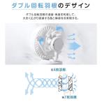 【ダブル回転羽根のデザイン】ダブル回転羽根の速度・角度を利用して、大きく広がり直進する風と静音性を実現する。羽根の方向が反対のダブルファンを搭載。後部の7枚羽根はタービンの役割り。高速回転により空気は集積・圧縮されて前部の大きな4枚羽根に引き込まれ、直進性と広がりが調和された風を生み出します。極めて静かで、空気循環の効率もアップできる送風性能です。