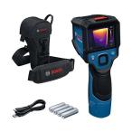 - 【特長】●ディスプレイ内中心の十字線を特定箇所に合わせてレーザー照射でき、実際の測定箇所が一目瞭然です。●非接触で、簡単に広範囲の温度分布を可視化できます。●高い熱画像解像度により鮮明に探知結果が表示されます。●熱画像と実画像を重ねて表示可能です。●放射率は手動入力または本体に設定された放射率リストから選択可能です。●USBケーブルで接続すればPCに保存データを転送できます。●LEDライト搭載で暗い場所でも綺麗な画像保存をサポートします。【用途】●赤外線センサーによって取り込まれた領域の温度分布を、異なる色で描写します(熱画像)。●測定する領域や対象物に接触させないで温度差を測定でき、温度差により不具合や異常箇所等を可視化できます。●断熱材の断熱不良、遮熱診断(サーマルブリッジの場所の特定など)に。●床や壁の暖房および温水パイプ(床下暖房など)の確認に。●電気設備の点検(ヒューズや端子など)に。●機械部品の破損発見等に。(ボールベアリング破損による過熱など。)【仕様】●測定温度範囲(℃):-20〜450●温度最小表示(℃):0.1●測定視野角(°):55.6×42●空間分解能(mrad):3.79●使用温度範囲(℃):-10〜+45●赤外線解像度(ピクセル):256×192●ディスプレイサイズ:2.8●電源(V):単3アルカリ乾電池×4本/ボッシュプロ用10.8Vリチウムイオンバッテリー(別売)●幅(mm):79●奥行(mm):89●高さ(mm):209●温度分解能(℃):0.1【仕様2】●測定可能距離:≧0.5m●測定精度(周辺温度20〜23℃、放射率ε>0.95、測定距離1m、動作時間5分以上、口径150mm、ライトとレーザーをスイッチオフの状況下において):0〜≦+100℃:±2℃、>+100℃:±2%●本体メモリーの≧像保存数:約500件●防塵・防水構造:IP54(電池取り付け部除く、直立状態)●連続使用時間:約4時間(単3アルカリ乾電池)、約8時間(10.8V2.0Ah充電式専用バッテリー別売)【セット内容/付属品】●キャリングバッグ●USBケーブルType-C-Type-A●電池アダプター●単3アルカリ乾電池4本(テスト用)【材質/仕上】●ポリアミド樹脂(PA)【特長】●ディスプレイ内中心の十字線を特定箇所に合わせてレーザー照射でき、実際の測定箇所が一目瞭然です。●非接触で、簡単に広範囲の温度分布を可視化できます。●高い熱画像解像度により鮮明に探知結果が表示されます。●熱画像と実画像を重ねて表示可能です。●放射率は手動入力または本体に設定された放射率リストから選択可能です。●USBケーブルで接続すればPCに保存データを転送できます。●LEDライト搭載で暗い場所でも綺麗な画像保存をサポートします。【用途】●赤外線センサーによって取り込まれた領域の温度分布を、異なる色で描写します(熱画像)。●測定する領域や対象物に接触させないで温度差を測定でき、温度差により不具合や異常箇所等を可視化できます。●断熱材の断熱不良、遮熱診断(サーマルブリッジの場所の特定など)に。●床や壁の暖房および温水パイプ(床下暖房など)の確認に。●電気設備の点検(ヒューズや端子など)に。●機械部品の破損発見等に。(ボールベアリング破損による過熱など。)【仕様】●測定温度範囲(℃):-20〜450●温度最小表示(℃):0.1●測定視野角(°):55.6×42●空間分解能(mrad):3.79●使用温度範囲(℃):-10〜+45●赤外線解像度(ピクセル):256×192●ディスプレイサイズ:2.8●電源(V):単3アルカリ乾電池×4本/ボッシュプロ用10.8Vリチウムイオンバッテリー(別売)●幅(mm):79●奥行(mm):89●高さ(mm):209●温度分解能(℃):0.1【仕様2】●測定可能距離:≧0.5m●測定精度(周辺温度20〜23℃、放射率ε>0.95、測定距離1m、動作時間5分以上、口径150mm、ライトとレーザーをスイッチオフの状況下において):0〜≦+100℃:±2℃、>+100℃:±2%●本体メモリーの≧像保存数:約500件●防塵・防水構造:IP54(電池取り付け部除く、直立状態)●連続使用時間:約4時間(単3アルカリ乾電池)、約8時間(10.8V2.0Ah充電式専用バッテリー別売)【セット内容/付属品】●キャリングバッグ●USBケーブルType-C-Type-A●電池アダプター●単3アルカリ乾電池4本(テスト用)【材質/仕上】●ポリアミド樹脂(PA)