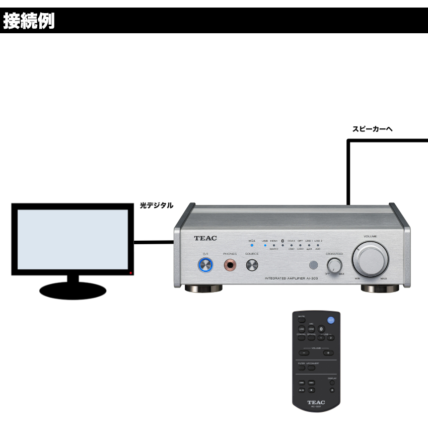 - 【セット内容】YAMAHA 開放型天井埋込スピーカー ×2/TEAC プリメインアンプ AI-303-S(リモコン付き)/10mスピーカーケーブル×2 ARC/eARCとHDMI CEC、Bluetoothや光デジタル端子と接続可能 スタッフのコメント: リビングでのご使用に最適な、リモコン付きプリメインアンプと天井埋込スピーカーのセットです。 プリメインアンプは、HDMIでテレビ、USBでパソコン、OPTICAL/COAXIALでCDプレーヤーなど、複数の機器とデジタル接続が可能。 高性能DACにより、各ソースの音質を引き出し、ホームリビングでも臨場感のある音をお楽しみいただけます。 付属のリモコンは、障害物のない5m以内で動作します(従来の赤外線方式)。 そのため、アンプを棚の中や扉付き収納に隠して設置した場合は、リモコン操作が届かない場合がありますのでご注意ください。 機器一式を見せたくない場合や、収納内にまとめて設置される場合は、当店にて壁埋込コントローラー付きセットもご用意しております。リモコンが届かない環境でも快適に操作できるため、住宅設備として導入される際におすすめです。 ■セットの特徴 本セットの天井埋込スピーカーは、開放型で豊かな低音が特徴です。 天井面全体を使って音が広がるため、箱鳴り感があります。 一方で、構造上、他室への音漏れは比較的起こりやすい傾向があります。 音漏れを抑えたい場合には、密閉型構造のスピーカー(例:BOSE FS2CE)もラインナップしておりますので、用途に合わせてご検討ください。 システムの仕様 出力CH数 2CH 最大出力 25W + 25W(LINE IN、1kHz、8Ω、 THD 0.03%、JEITA) スピーカー寸法 Φ150x86.5Hmm スピーカー質量 0.8kg(スピーカー本体のみ) 天井開口寸法 122 mm スピーカー付属品 グリル、テンプレート ご確認ください。 ※セット内容の一部デザインは生産時期や改良・在庫状況などにより予告なく変更となる場合がございます。予めご了承下さい。【スピーカーの特徴】 ヤマハ独自のダブルレイヤー10cmを搭載したメカニカル2ウェイ。取り付け場所の制約が少ない79mmの薄型デザイン。 マグネットキャッチグリルで簡単な設置・取り外しが可能 薄型・コンパクト設計で、自由度の高い設置性を確保