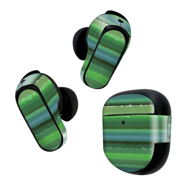 Bose QuietComfort Earbuds II 用 スキンシール ボーズ イヤバッズ2 用 本体3セット ケース1セット 保護 005111 ボーダー 緑 イラスト