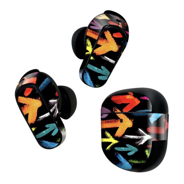 Bose QuietComfort Earbuds II 用 スキンシール ボーズ イヤバッズ2 用 本体3セット ケース1セット 保護 007484 カラフル 矢印 模様 黒 ブラック