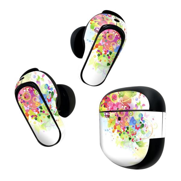 Bose QuietComfort Earbuds II 用 スキンシール ボーズ イヤバッズ2 用 本体3セット ケース1セット 保護 007668 カラフル レインボー 蝶