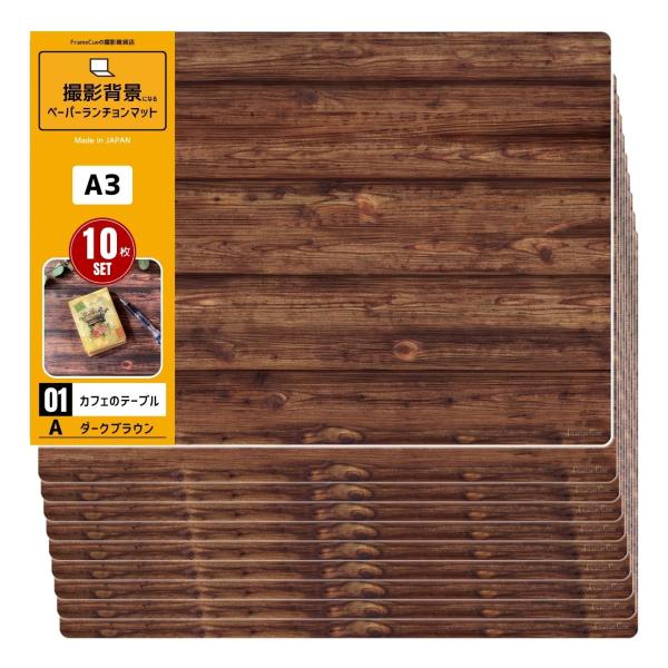 FrameCue 10枚セット 01カフェのテーブルAダークブラウン(1柄×10枚)撮影背景になるペーパーランチョンマット A3 背景紙 ペーパーランチョンマット 撮影