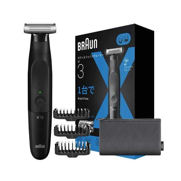 - ブラウン XT3000-C XT 3000-c ボディ&フェイス グルーマー PRO X ブラック発売日:2025年4月11日●肌を守りながら剃る、全身+VIO用シェーバー●スキンプロテクトテクノロジー肌に直接刃が当たらない設計を採用。肌を守りながら時短剃りが可能です●ヘッドヘッドが前後に動くので、細かい凹凸にも密着しながら剃ることができます●アタッチメント豊富なアタッチメントで好きな長さに調整できます●防水設計防水設計だからお風呂剃りも対応。簡単にお手入れ可能?【仕様】本体サイズ(高さ×幅×奥行):152×35×30重量:105g電源方式:充電式電池:ニッケル水素電池電圧切替え:100-240V海外対応:可充電時間:約10時間連続使用可能時間:約45分お風呂剃り/水洗い:可替刃:XT20付属品:ブレードヘッド、フェイスコーム 1mm、フェイスコーム 3mm、フェイスコーム 5mm、ポーチ、専用コード