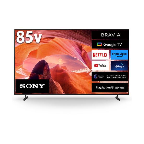 - こちらの商品は家電リサイクル法対象商品につき、下取り・リサイクル回収をお申し込みの際は指定のリサイクル料・収集運搬料を頂戴いたします。商品お届け時に当社配送担当が回収いたしますため現金でお支払い下さい。※アンテナケーブルは付属しておりませんソニー KJ-85X80L 液晶テレビ BRAVIA 85型 発売日:2023年6月10日●明るく鮮やかな色合いを再現人の目に映る色は、たとえば赤といっても、バラ、紅葉、トマト、ワインなど、さまざまな赤の色合いがあります。「トリルミナス プロ」では、広い色再現領域に加えて、独自の新アルゴリズムにより、彩度/色相/明度を3次元で検出することで、より細部まで忠実な色を自然に再現することが可能になりました。これにより、今まで表現しきれなかった繊細な色のニュアンスや、人肌のみずみずしい質感までも明るく色鮮やかに描き出します。●あらゆる映像を高精細な4K画質へアップコンバート。4K映像もさらに美しい映像で描き出す地上放送やネット動画など、あらゆるコンテンツを高精細な映像に作りかえる超解像エンジン「4K X-Reality PRO(4K エックス リアリティー プロ)」を搭載。ハイビジョン映像を4Kにアップコンバートするデータベースと、4K映像をさらに高精細化するさまざまな映像に対応したデータベースを参照することで、最適な高精細化処理を行います。●HDR信号に対応(*)HDR10や新4K衛星放送で使用されているHLG(ハイブリッド・ログガンマ)、ドルビービジョンなどのHDR信号に対応(*)。地上放送などで使用されているSDR信号に比べ、広いダイナミックレンジの輝度情報を扱えるようになります。これにより、白飛びしてしまいがちな明るい部分の色味や潰れてしまいがちな暗部の階調も再現し、肉眼で見ているかのような奥行き感や立体感のある映像を創出します。* 信号によっては一部対応していないものがあります●テレビ本体のスピーカーで3次元のリアルな立体音響を実現「ドルビーアトモス」対応前後左右に加え、高さ方向の音表現も可能にする立体音響技術「ドルビーアトモス」に対応。従来、立体音響を楽しむには天井を含むさまざまな場所にスピーカーを設置する必要がありました。ブラビアでは、最新の音声処理システムにより、テレビ本体のスピーカーでかんたんに3次元の立体音響を体感できます。●クリアな音質と迫力ある重低音音の歪(ひず)みを低減する形状の振動板を採用した、「X-Balanced Speaker」を搭載。音の解像感が向上し、クリアな高音質を再現します。また、大容量のスピーカーボックスにより、迫力のある重低音を実現します。●ネット動画を、心ゆくまでGoogle TV(TM)機能搭載なのでネット動画の視聴に最適。映画、音楽、ゲームなどあらゆるジャンルのコンテンツを楽しめます。また、視聴履歴や好みに合わせて、Google があらゆる動画配信サービスの中からあなたにぴったりのコンテンツをおすすめするので、お気に入りのエンターテインメントを心ゆくまで楽しめます。さらに、Google アシスタントを使えば、音声でコンテンツの検索やテレビの操作もできます。※ 音声検索の使用には、インターネット環境と Google アカウントでのログインが必要です ※ ブラビアの一部機能の使用には Google アカウントでのログインが必要です●スマホの画面から大画面の世界へAndroid(TM)からも、iPhoneからも、いつもスマートフォンで見ている写真、動画、音楽、ネット動画をワンタッチでブラビアの大画面に映すことができます。●番組を見ながら、別の2番組を同時に録画できる地上放送/BS・CS/BS4K・CS4K、3チューナー搭載なので、番組を見ながら、2K放送でも、4K放送でも、同時刻に放送中の別の2番組を外付けUSBハードディスク(別売)に録画することができます。※ 一部のHDDでは使用できません。サービス側の指定による録画禁止コンテンツの録画はできません【仕様】本体サイズ(幅×高さ×奥行)mm:1901×1090×73スタンド含む本体サイズ(幅×高さ×奥行)mm:1901×1170×453本体重量(kg):45.8スタンド含む重量(kg):47.8入力端子:HDMI×4、ビデオ×1出力端子:光デジタル音声出力端子(AAC/PCM/AC3/DTS)、ヘッドホン端子付属品:標準スタンド、リモコン、単4形乾電池(2個)、転倒防止用固定ベルト一式省エネラベリング 2026年度目標省エネ達成率66%年間消費電力312kWh/年年間電気代目安8420円/年
