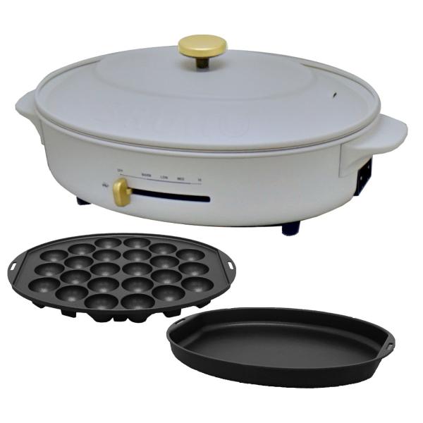 - 「毎日にちょっとゆとりを、暮らしをもっとゆたかに。」をコンセプトとする新シリーズ「BRUNO crassy+(ブルーノ クラッシィ)」より、第1弾「オーバルホットプレート」が登場!平面、たこ焼き、深鍋と充実のプレートがセットに。付属のハンドルを使えば、プレートの取り替えも楽々。テーブルで次々と調理できるので、ホストもゲストと一緒にたのしめます。くず受けトレイ付きでお手入れも簡単。毎日使いたくなるデザインです。