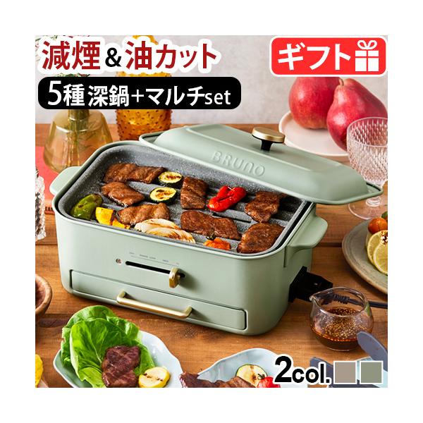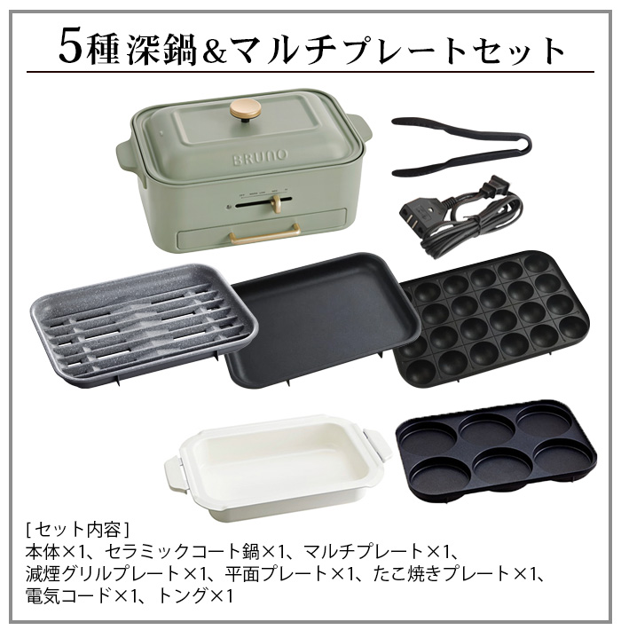 【選べる5大特典付】ブルーノ コンパクトグリルホットプレート BOE109 BRUNO 本体&5種深鍋 マルチプレートセット 2〜3人用 焼肉 たこ焼き 減煙 温度調整 鍋