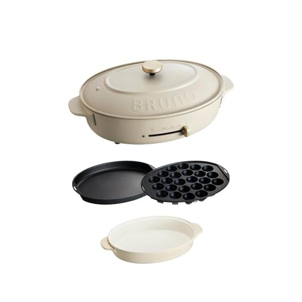 BRUNO ブルーノ オーバルホットプレート 本体 プレート3種 (たこ焼き 深鍋 平面) グレージュ Greige おしゃれ かわいい これ1