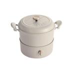 - BRUNO マルチグリルポット グレージュ サイズなし BOE065-ASGZ 電気鍋 グリル鍋 電気グリル鍋 グリルパン フォンデュ鍋 3人 4人 直火対応 IH対応 揚げ物 蒸し器 なべ 鍋 深鍋 万能鍋 おしゃれ かわいい デザイン BRUNO チーズフォンデュ 串揚げ パーティー 送料無料 煮る・焼く・蒸す・揚げる・炊くをマルチにこなす! 1台5役の電気鍋1台5役をこなすマルチな電気鍋としてはもちろん、直火とIHにも対応しているので、毎日のおかずやスープづくりにも活躍します。キッチンで下ごしらえをした後、テーブルの上で電源ベースにセットすれば、家族みんなであつあつのお料理を愉しめます。旧来のグリルポットからフタの仕様も大きく変わりました。裏側の小さな突起が、食材からでた蒸気を逃さず鍋の中で循環させ、食材の旨み※をぎゅっと凝縮します。※素材の元からある旨み、おいしさを生かします。3~4人で楽しめるサイズ感コンパクトながら最大2ℓのたっぷり容量で、家族みんなの食卓からパーティーシーンまで対応。ホーローライクなデザインキッチンやテーブルにそのまま出してインテリアのように愉しめる、ホーロー鍋をイメージしたお洒落なデザインです。煮る・焼くセラミックコートの鍋は焦げやにおいが付きにくくお手入れも簡単。鍋単体で直火・IHでも使用可能です。蒸す付属の蒸し網をセットすれば、蒸し野菜やプリン、フランなどの料理が愉しめます。揚げる油はねを抑えてくれる揚げ物カバーは、串揚げやオイルフォンデュパーティーにぴったり。炊く3合のお米が炊けるサイズ感。フタ裏の突起が食材からでた蒸気を逃さず循環し、ふっくら炊き上がります。サイズ W310mm×H235mm×D225mm鍋サイズ:W310xH153xD225[mm]、電源コード含む 5