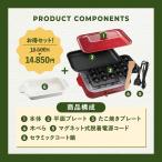 付属品:平面プレート たこ焼きプレート セラミックコート鍋 木べら マグネット式脱着電源コード