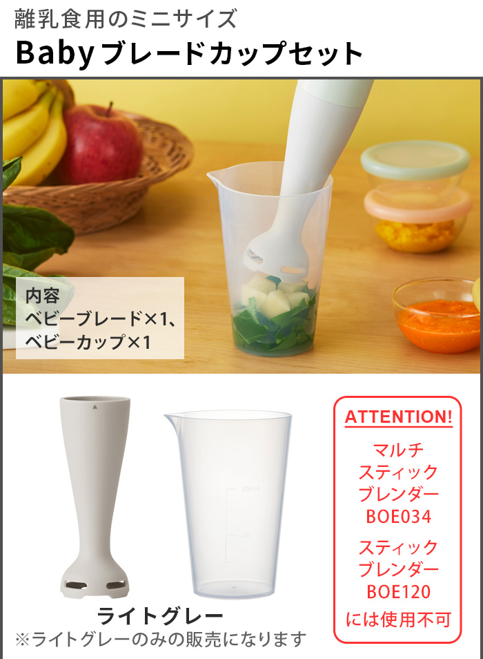 ブルーノ 離乳食 ブレンダー ハンドブレンダー BRUNO マルチスティックブレンダー2専用 baby用ブレードカップセット BOE142-LGY [本体別売り] 電動 ミキサー