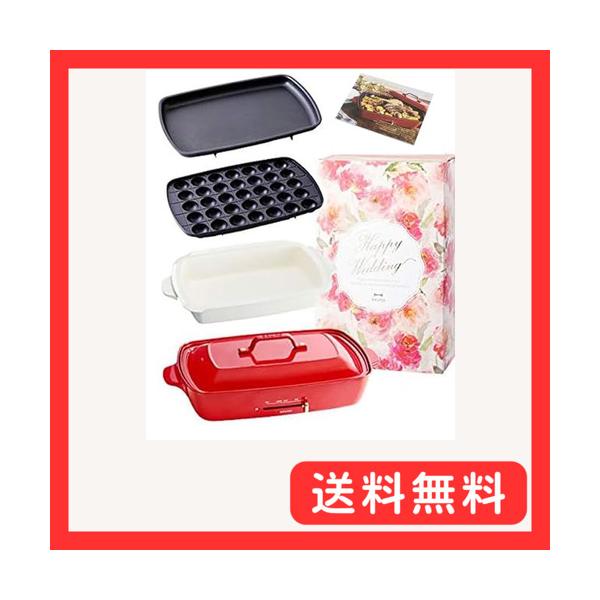 「BRUNO ブルノ ホットプレト グランデ サイズ 本体 プレト3種 (たこ焼き 平面 深鍋) レシピブック 付き 赤 レッド 結婚祝い」