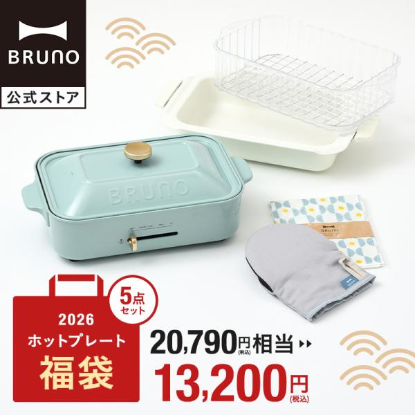 BRUNO 福袋 ギフトセット 2026年 コンパクトホットプレート福袋 ブルーグレー 2026年福袋 割引 お得 ホットプレート セラミックコート鍋 スチーマー1段 ミトン