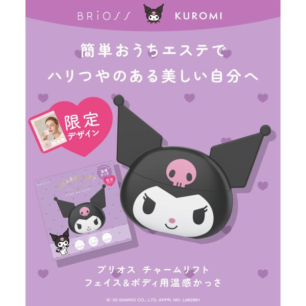 株式会社サンリオのキャラクター「クロミ」とコラボしたブリオス チャームリフトの限定デザインを数量限定で発売。簡単のおうちエステで、ハリつやのある美しい自分へ。これ1台でフェイスからボディまでトータルケアできるEMS×温感×振動機能搭載の温感カッサ。
