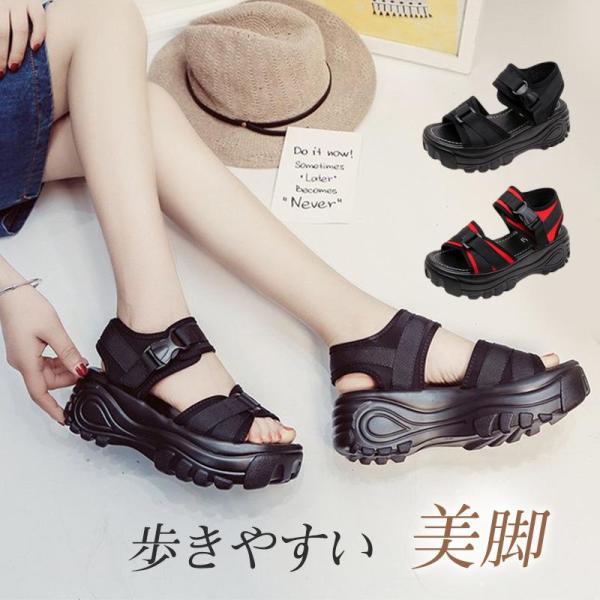 サンダル レディース 厚底 マジックテープ スポーツサンダル 通気性 夏 韓国風 カジュアル 歩きやすい スニーカー 通気性 美脚 疲れない 可愛い