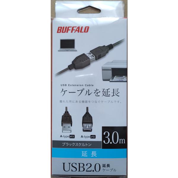 バッファロー(BUFFALO)のUSB2.0延長ケーブル(3m)です。