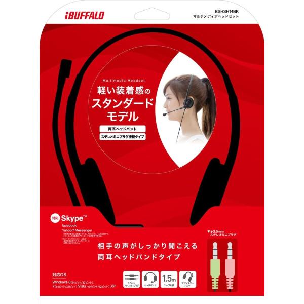 - メーカー名:iバッファロー型番:BSHSH14BK商品名:両耳ヘッドバンド式 ヘッドセット ブラックJANコード:4950190340690●長時間使っても耳が痛くなりにくい、ヘッドバンドタイプの軽量ヘッドセット長時間使っても耳が痛くなりにくい、ヘッドバンドタイプの軽量ヘッドセット従来製品の約4分の1の軽さ(※)を誇る58gの軽量ヘッドセット。長時間使用しても耳が痛くなりにくいから、長電話(ビデオチャット)に最適です。 また、両耳モデルだから相手の声もしっかり聞けます。※BSHSH11BKと比較。●音声をしっかり伝えるフレキシブルマイクアーム自由な位置にマイクを移動できるフレキシブルアームだから、大きな声を出さなくても自分の声を相手にしっかり伝えます。●好みの装着感で使えるアジャスターバンド最適な位置にイヤパッドを固定できる、アジャスターバンドを採用。頭にしっかりフィットさせることができます。●接続方法●特定有害物質使用制限指令「RoHS指令」に準拠2008年7月からEU圏で施行された電子機器に対する特定有害物質使用制限指令「RoHS指令」に準拠しています。<RoHS指令で使用が制限されている物質>(1)鉛、(2)水銀、(3)カドミウム、(4)六価クロム、(5)ポリ臭化ビフェニール(PBB)、(6)ポリ臭化ジフェニールエーテル(PBDE)●【無料配布中】Skypeがすぐに始められる簡単セットアップツール対応機種3.5mmステレオミニプラグ(IN、OUT)搭載のWindowsパソコン、または3.5mmステレオミニプラグ(IN、OUT)のついたサウンドカードを搭載したWindowsパソコン※外部電源マイクロフォンが必要な一部のThinkPadは非対応。※Mac非対応。対応OSWindows RT / 8(64ビット/32ビット) / 7(64ビット/32ビット) / Vista(64ビット/32ビット) / XP接続方法3.5mmステレオミニプラグケーブル長約1.5m外形寸法(幅×高さ×奥行)140×165×45mm質量約56g(ケーブル含む)パッケージ寸法200×260×64mmパッケージ質量(本体含む)約200g動作環境温度-10℃?50℃、湿度0%?90%(結露なきこと)製品構成本体【ヘッドフォン部】周波数帯域20Hz?20KHzインピーダンス32Ω標準入力20mW最大入力30mW感度114±4dB【マイクロフォン部】指向性無指向性周波数帯域100Hz?10KHzインピーダンス2.2kΩ感度-54±3dB