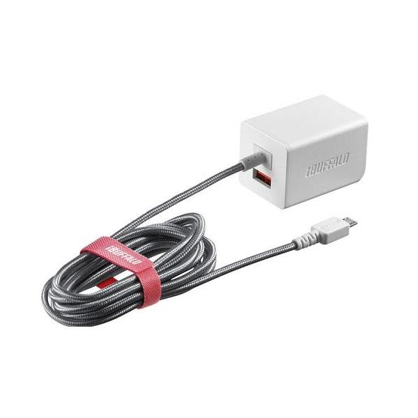 バッファロー(BUFFALO) BSMPA2401BC2WH AC-USB 2.4A microUSB 1.8m/自動判別USBx1 ホワイト