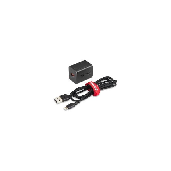 - バッファロー BSMPA2404LC1BK 2.4A USB急速充電器 Lightningケーブル1.5m付属(ブラック)●iPhone/Androidを自動判別し、最適な充電を行うAutoPowerSelect機能搭載。●“Made for iPod/iPhone/iPad”を取得した、Lightningケーブル付属のUSB充電器●断線に強いファブリックケーブル&コネクターの付け根を保護するラバーブッシュ【仕様】対応機種:・Lightningコネクターを搭載したApple社製品(iPhone/iPad/iPodシリーズ)・USB microBコネクターで充電するAndroidスマートフォン、タブレット・PCのUSB充電に対応しているゲーム機・デジカメなどコネクター形状:USB TypeA×1入力電圧:AC100V-240V出力電圧:DC5V出力電流:最大2.4A外形寸法(幅×高さ×奥行):28×41×32mm質量:71g動作環境:温度5〜40℃、湿度10〜85%(結露なきこと)製品構成:本体、取扱説明書、Lightningケーブル1.5m、ケーブルバンド