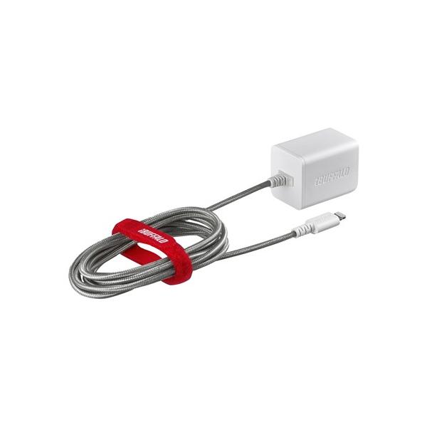 バッファロー BSMPA2403LC1TWH 2.4A USB急速充電器 Lightningケーブル一体型タイプ 1.5m ホワイト