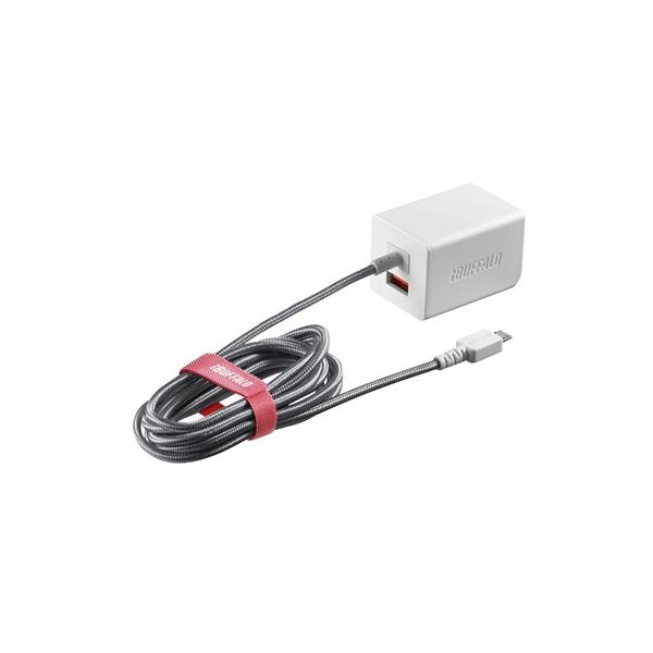 バッファロー BSMPA2401BC2TWH 2.4A出力 AC-USB急速充電器 microUSB急速ケーブル一体型タイプ 1.8m ホワイト