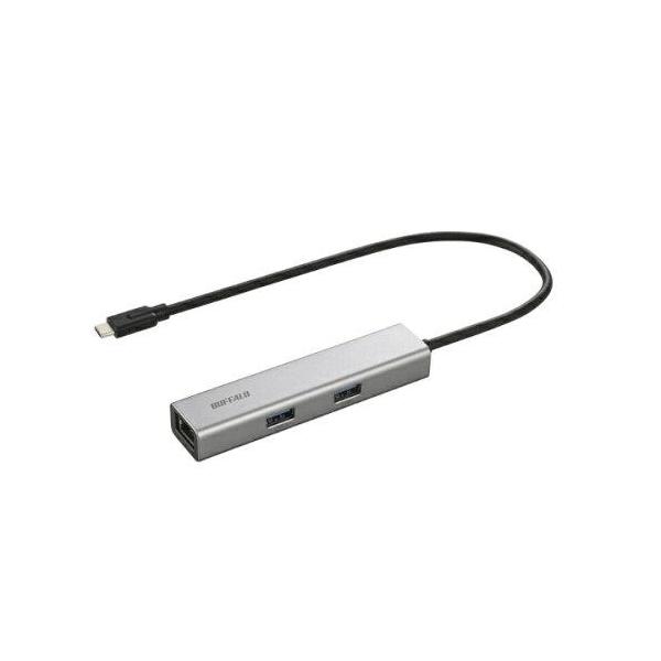 - バッファロー LUD-U3-CU301SV LANアダプター USB-Cドッキングステーション LUDU3CU301SV発売日:2023年10月20日●ケーブル1本で周辺機器をまとめてノートパソコンに接続できるドッキングステーションUSB Type-Cケーブル1本で、ノートパソコンやタブレットに周辺機器を接続することができるドッキングステーションです。拡張用の液晶モニターやキーボードを簡単に接続・解除でき、社内の移動時や外出の際に便利です。●LANポートのないパソコンも有線LAN環境へ本商品は、GigaとUSB 3.2(Gen 1)に対応した有線LANアダプターです。LANポートのないパソコンもUSB端子に接続することで、有線LAN通信が可能になります。有線LAN環境しかないホテルや宿泊先でも快適高速インターネットを楽しむことができます。●HDMIの映像出力に対応4K出力に対応したHDMIの映像出力が可能。映像出力ポート非搭載のパソコンを使用している場合や、訪問先のプロジェクターやモニターを使用する際も対応可能です。●USB 3.2(Gen 1)対応のハブ搭載USB 3.2(Gen 1)対応のUSB Type-Aを3ポート搭載。大容量のデータも素早く転送することが可能です。●Windows・Macに対応ドライバーのインストールが不要で、挿すだけですぐ使えます。●取り回ししやすいケーブル長30cmスタンド使用時や、USBポートまで距離がある場合に便利です。 【仕様】対応機種:USB 3.2(Gen 1)/USB 3.1(Gen 1)/3.0 端子(Type-C)搭載のWindowsパソコン、MacおよびChromebookケーブル長:約30cm外形寸法(幅×高さ×奥行):約112×17×25mm質量:約67g規格:HDMI、VCCI classB付属品:取扱説明書/保証書USBポートパソコン側:Type-C オス×1(ケーブル直付け):通信用USB 3.2(Gen 1)/USB 3.1(Gen 1)/3.0/2.0/1.1周辺機器側:USB Type-Aメス×3:通信用USB 3.2(Gen 1)/3.1(Gen 1)/3.0/2.0/1.1最大転送速度:5Gbps(規格値)LANポート規格:IEEE802.3ab準拠(1000BASE-T)、IEEE802.3u準拠(100BASE-TX)、IEEE802.3(10BASE-T)コネクター:RJ-45アクセス方式:CSMA/CD伝送速度:1000Mbps/100Mbps/10MbpsHDMIポート規格:HDCP1.4ポート:HDMI Type-A 19ピン メス対応解像度:最大3840×2160(30Hz)保証期間:1年間