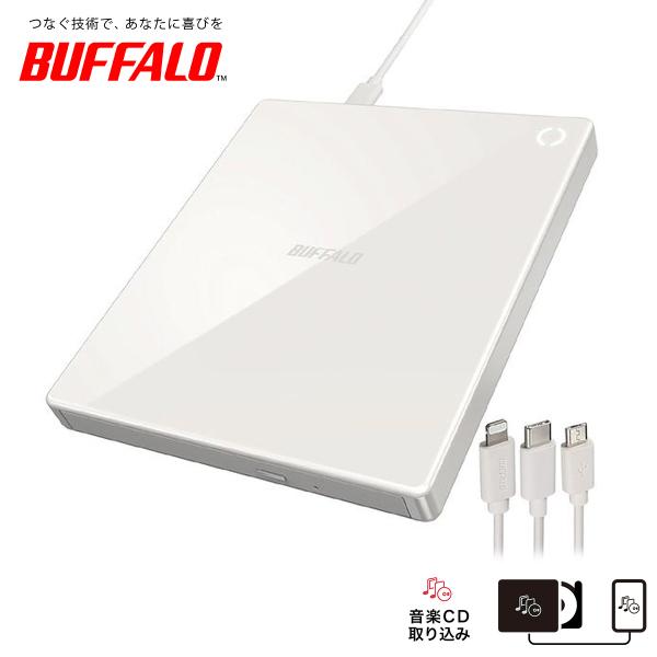 BUFFALO スマートフォン用CDレコーダー ラクレコ ケーブル接続 ホワイト RR-C1-WH/D