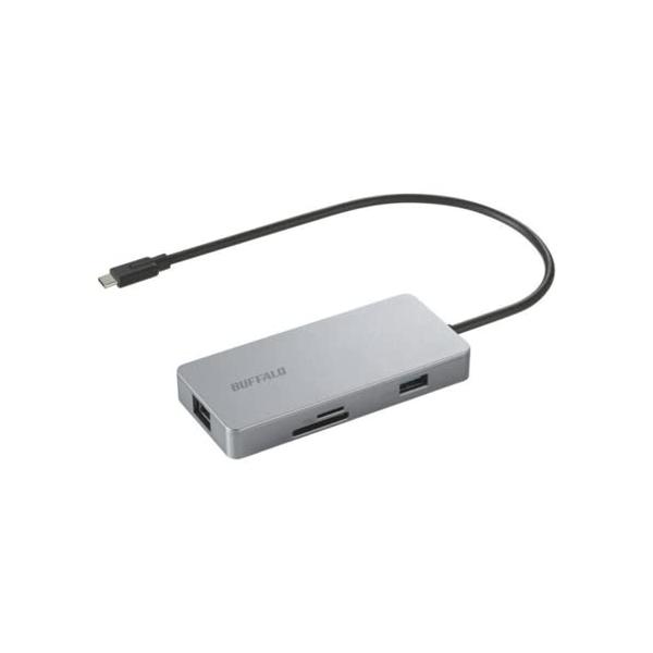 - BUFFALO LUD-U3-CGCSV LANアダプター シルバーLUDU3CGCSV発売日:2022年7月26日●ケーブル1本で周辺機器をまとめて接続できるドッキングステーションUSB Type-Cケーブル1本で、ノートパソコンやタブレットに周辺機器を接続することができるドッキングステーションです。拡張用の液晶モニターやキーボードを簡単に接続・解除でき、社内の移動時や外出の際に便利です。●LANポートのないパソコンも有線LAN環境へ 本商品は、GigaとUSB 3.2(Gen 1)に対応した有線LANアダプターです。LANポートのないパソコンもUSB端子に接続することで、有線LAN通信が可能になります。有線LAN環境しかないホテルや宿泊先でも快適高速インターネットを楽しむことができます。●SD/microSD対応カードリーダー搭載変換アダプターなしでmicroSDカードを挿せる専用スロットを備えた2スロット仕様※です。※メディア2枚の同時使用はできません。●USB Power delivery(USB PD)対応 USB Power delivery(USB PD) に対応しており、最大85Wの出力に対応。ノートパソコンを充電しながら、ディスプレイ出力やUSB機器などとデータ通信をすることが可能です。 ※電源アダプターは付属していません。※本商品の消費電力は15Wです。USB Type-C接続の電源アダプターを使用してパソコンを充電する際は、パソコン推奨の電源アダプターの出力より15W以上大きい出力の電源アダプターの使用を推奨します。上記の出力に満たない場合は、低速充電の警告が表示されることがありますが使用には問題ありません。※ご使用のパソコン、電源アダプターによってはパソコン推奨の電源アダプターの使用を推奨する警告が表示されることがありますが、使用には問題ありません。●HDMIの映像出力に対応4K出力に対応したHDMIの映像出力が可能。映像出力ポート非搭載のパソコンを使用している場合や、訪問先のプロジェクターやモニターを使用する際も対応可能です。 ※接続先のパソコンが、USB Type-Cからの映像出力(Displayport Alternate Mode)に対応している必要があります。●USB 3.2(Gen 1)対応のハブ搭載 USB 3.2(Gen 1)対応のUSB Type-Cを1ポート※、Type-Aを1ポート搭載。大容量のデータも素早く転送することが可能です。 ※1つはUSB PD対応ACアダプター入力専用です。※本商品のUSB Type-CポートからのAlternate Modeによる映像出力には対応しておりません。●Windows・Macに対応 ドライバーのインストールが不要で、挿すだけですぐ使えます。※パソコンによっては初回接続時にインターネット回線への接続が必要な場合があります。●ケーブルが邪魔にならないショートケーブル ケーブル長約30cmのショートケーブルで、ノートパソコンとつないでもケーブルが邪魔になりません。 【仕様】対応機種:USB 3.2(Gen 1)/USB 3.1(Gen 1)/3.0 端子(Type-C)搭載のWindowsパソコン、MacおよびChromebookケーブル長:約30cm※コネクター部除く電力供給方式:バスパワー/USB PD3.0給電※USB PD3.0給電でご使用の場合は、パソコン推奨の電源アダプターの出力より15W以上大きい出力の電源アダプターを使用し、本商品のPD入力ポートへ接続します。最大転送速度:最大5Gbps(規格値)外形寸法(幅×高さ×奥行):約116mm×約16mm×約52.5mm※ケーブル・突起部除く質量:約85gパッケージ寸法(幅x高さx奥行):約124mm×約196mm×約22.5mmパッケージ質量:約133g(本体含む)保証期間:1年間規格:VCCI classB主な付属品:取扱説明書/保証書USBポート パソコン側 :Type-C オス×1(ケーブル直付け):通信用/充電用(USB PD対応/最大85W) USB 3.2(Gen 1)/USB 3.1(Gen 1)/3.0/2.0/1.1USBポート 周辺機器側:・USB Type-Cメス×1:通信用、USB 3.2(Gen 1)/3.1(Gen 1) /3.0/2.0/1.1 、最大電流900mA ・USB Type-Aメス×1:通信用、USB 3.2(Gen 1)/3.1(Gen 1) /3.0/2.0/1.1、最大電流900mA※本商品のUSB Type-Cポートからの Alternate Modeによる映像出力には対応しておりません。USBポート PD入力ポート:Type-C メス×1:給電用、最大入力100WUSBポート 最大通信速度:5Gbps/480Mbps/12Mbps(規格値)LANポート規格:IEEE802.3ab準拠(1000BASE-T)、IEEE802.3u準拠(100BASE-TX)、IEEE802.3(10BASE-T)※USB 3.2(Gen 1)/ 3.1(Gen 1)/3.0接続時のみ1000BASE-T対応LANポート:コネクター:RJ-45、アクセス方式:CSMA/CD、伝送速度:1000Mbps/100Mbps/10MbpsHDMIポート 規格:HDMI High Speed、HDCP 2.2※接続先のパソコンがUSB Type-Cからの映像出力に対応していること。(Displayport Alternate Mode)、ポート:HDMI Type-A 19ピン メス※接続先のパソコンがUSB Type-Cからの映像出力に対応していること。(Displayport Alternate Mode)、対応解像度:最大3840×2160(30Hz)※接続先のパソコンがUSB Type-Cからの映像出力に対応していること。(Displayport Alternate Mode):