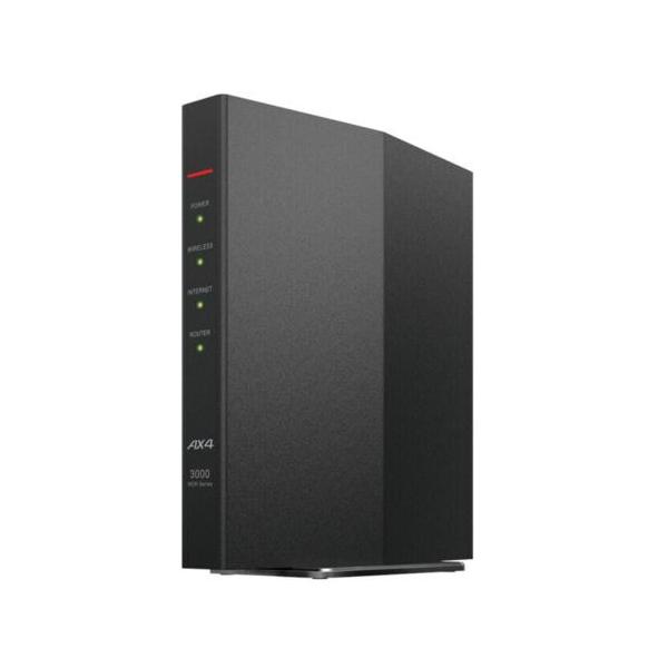 - バッファロー WSR-3000AX4P-BK Wi-Fi 6対応 無線ルーター AirStation ブラック WSR3000AX4PBK発売日:2023年11月22日●3本の5GHzアンテナで遠距離のスマホ通信をより高速・安定化3本のアンテナは、遠距離の2アンテナ通信をより高速・安定化させるために機能します。●Wi-Fi 6(11ax)に対応Wi-Fi 5(11ac)ルーターを、Wi-Fi 6(11ax)ルーターに置き換えることで、無線スループットの向上が見込めます。●ビームフォーミングビームフォーミングは、端末をめがけて電波を送信。安定感のある通信を実現できます。●たくさんつないでも速度が落ちにくい MU-MIMO複数端末の同時通信を可能にする「MU-MIMO」に対応。●「バンドステアリングLite」機能搭載Wi-Fi子機との電波強度を判断し、遠くまで届く2.4GHz帯と速度の速い5GHz帯の帯域切替を自動で行う「バンドステアリングLite」機能搭載。部屋中どこでも快適に通信できます。●手軽にメッシュネットワークを実現する「Wi-Fi EasyMesh?」家じゅうを複数のWi-Fi機器で簡単にカバー●家族のネットワークを守るネット脅威ブロッカー2 ベーシックご家庭にあるスマート家電をサイバー攻撃から守ります。●ネットの使い過ぎや有害サイトを簡単にブロック本商品には、端末ごとに時間帯を指定して接続を制限するアクセス制限機能と有害サイトの閲覧を端末ごとに制限できるフィルタリング機能を搭載しています。設定方法も簡単なので、利用機会が多いWi-Fiを安心してお使いいただくことができます。●ネットが速くなる! 日本の主要なIPv6サービスに対応アクセス集中による影響が少ないIPv6高速インターネットをご利用いただけます。●古いルーターから新しいルーターへの入れ替えがかんたん本商品は、今まで利用していた古いルーターから、新しく入手した新しいルーターに、プロバイダー接続情報を含む設定ほぼ丸ごとを一度に引っ越しできる「スマート引っ越し」に対応しています。 【仕様】無線LANインターフェース伝送方式:CCK、DSSS、OFDM、OFDMA、MIMO周波数範囲:5GHz:W52 36/40/44/48ch (5180〜5240MHz) W53 52/56/60/64ch (5260〜5320MHz) W56 100/104/108/112/116/120/124/128/132/136/140ch(5500〜5720MHz) W56(新電波法対応) 144ch 2.4GHz:1〜13ch (2412〜2472MHz)準拠規格(最大転送速度):5GHz:IEEE 802.11ax:2401Mbps (160MHz 2x2) IEEE 802.11ac:1733Mbps (160MHz 2x2)IEEE 802.11n:300Mbps (40MHz 2x2) IEEE 802.11a:54Mbps 2.4GHz:IEEE 802.11ax:573Mbps (40MHz 2x2) IEEE 802.11n:300Mbps (40MHz 2x2) IEEE 802.11g:54Mbps IEEE 802.11b:11Mbpsセキュリティー:WPA3 Personal WPA2 Personal WPA2/WPA3 Personal WPA/WPA2 Personal WEP(128-bit / 64-bit) Any接続拒否 プライバシーセパレーター MACアクセス制限 (最大登録許可台数:64台)アンテナ:内蔵アンテナ 5GHz:3本 2.4GHz:2本アクセスモード:インフラストラクチャーモード、中継機能有線LANインターフェース伝送速度:LANポート:最大1Gbps(1G/100M/10Mbps)×3 INTERNETポート:最大1Gbps(1G/100M/10Mbps)×1端子形状:RJ-45型 8極WAN側IP取得方法:手動 / DHCP / PPPoE / DHCPv6-PD / IPv6(IPoE/IPv4 over IPv6)セキュリティー:ステートフルパケットインスペクション(SPI)、パケットフィルタリング、VPNマルチパススルー(PPTP)その他機能:回線自動判別切替機能ネット脅威ブロッカー:ネット脅威ブロッカー2 ベーシック電源:AC100V 50/60Hz消費電力:14.4W(最大)外形寸法(幅×高さ×奥行):40×148×133mm ※付属品および突起物を除く保証期間:1年間主な付属品:スタンド、ACアダプター、LANケーブル(0.5m)、取扱説明書(保証書)