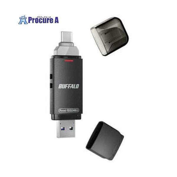 BUFFALO USB3.2(Gen2) Type-C/Aコネクター両対応 高速帯 スティック 500GB ブラック ■▼708-7022 SSD-SDH500U3-BA 1個