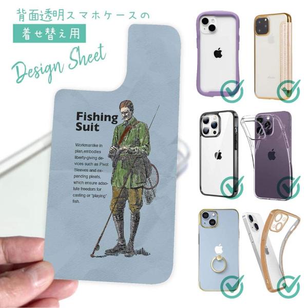 スマホケース in デザインシート 着せ替え インナーシート 背面 透明 クリアケース用 釣り ルアー バーバリー フィッシングスーツ iPhone Android