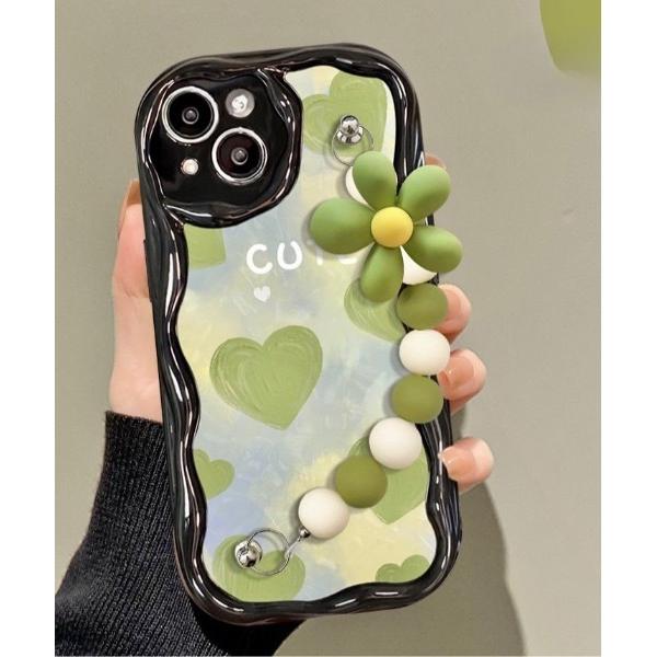 商品名:【OKUOKU 0909】グリーンハート&花チャーム付き iPhoneケース ruf-iphonecase-7-6