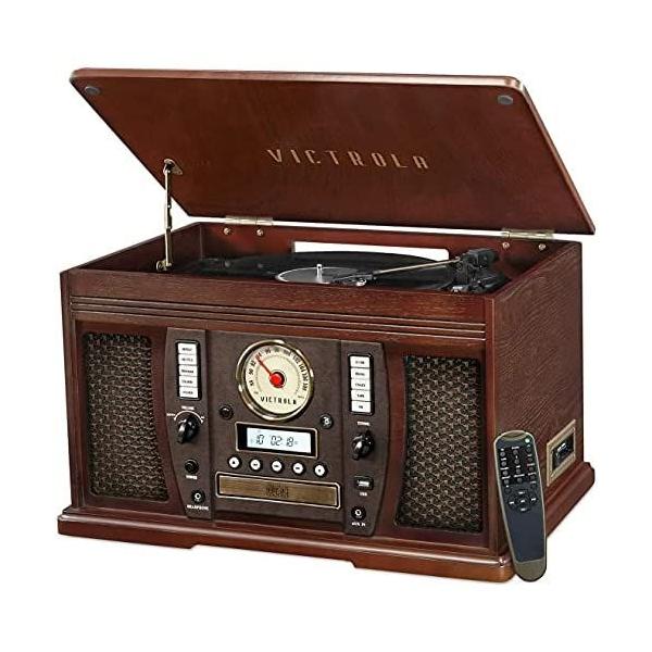 - Victrola/ビクトローラは外観から機械らしさを減らし家具らしく、見た目を重視したデザインの蓄音機メーカーステレオスピーカー内蔵-3スピードターンテーブル、ビニールからMP3への録音|ワイヤレスミュージックストリーミング|エスプレッソB06XHVHLQP重さ: 24.1 poundsおおよそのサイズ: 25