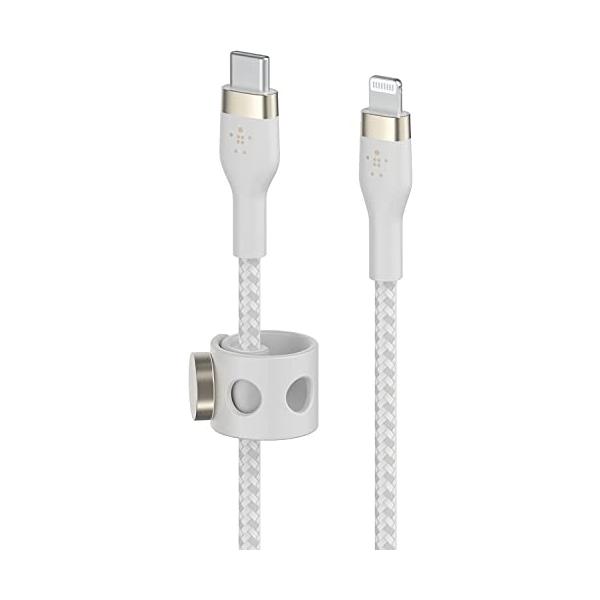 - 極めて優れた耐久性と柔軟性充電作業が快適になります。BelkinのBOOST↑CHARGE PRO Flex編組シリコンケーブルは、一般的なケーブルの最大30倍の高耐久性を備えた、絡まりやほつれが起きにくい、長く使用できる柔軟な充電ソリューションです。保管と取り付けを簡易化する、磁気ケーブル管理システムが付属しています。内部にシリコン製の被膜を採用柔軟性が高く、絡まりにくい長く柔軟なストレインリリーフケーブルのほつれを防止Lightningコネクタ摩耗と損傷の耐久試験済みサテンアルミニウムのケーブルヘッド強度とスタイルを向上編組の外被耐久性を高める二重編組ナイロン磁気ケーブル管理保管が簡単で、あらゆる場所にケーブルの取り付けが可能過去最高に耐久性が高いケーブルBOOST↑CHARGE PRO Flexシリコンケーブルは、ほつれにくい二重編組ナイロンを外被に採用しており、一般的なケーブルの最大30倍の高耐久性を備えています。iPhoneとiPad専用USB-Cケーブルto LightningコネクタはMFi認証を取得しており、USB-C PD急速充電に対応し、iPhone 12を25分で0%から50%まで充電します。絡まりを防止BOOST↑CHARGE PRO Flexケーブルは、外被に二重編組を採用し、内部にシリコンの技術を用いて作られた、柔軟性が高く、絡まりにくく、ねじれない充電ケーブルです。磁気ケーブル管理システムマグネットボタン付きの便利なケーブルストラップと金属製の粘着プレートが付属しており、あらゆる場所で充電ケーブルを簡単かつきれいに保管できます。