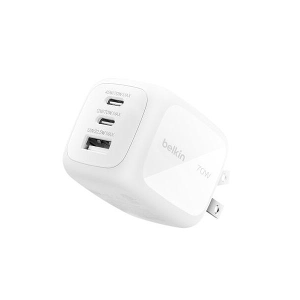 - WCH018qcWH belkin ベルキン 70W 3ポート GaN充電器 プラグ交換式