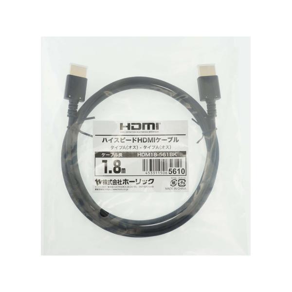 HDMIケーブル 1.8m ブラック ホーリック HDM18-561BK (65-1793-59)