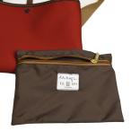【デザイン/仕様】ショルダーバッグ 開口部スナップボタンストラップで開閉、「マチ」無し、ブライドルレザートリミング(チョコレート)、内側脱着式ポケット、創業時の赤文字ピスネーム