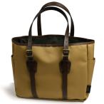 【デザイン/仕様】コットンキャンバス トート、ブライドルレザー6穴尾錠ハンドル(肩掛け可能)、両側にサイドポケット、開口部隠しマグネット、インサイド オープンポケット3室、ピスネーム付き